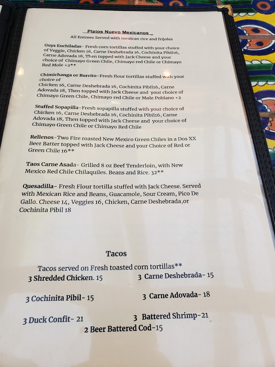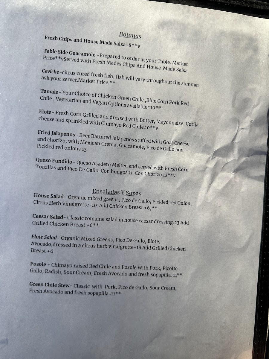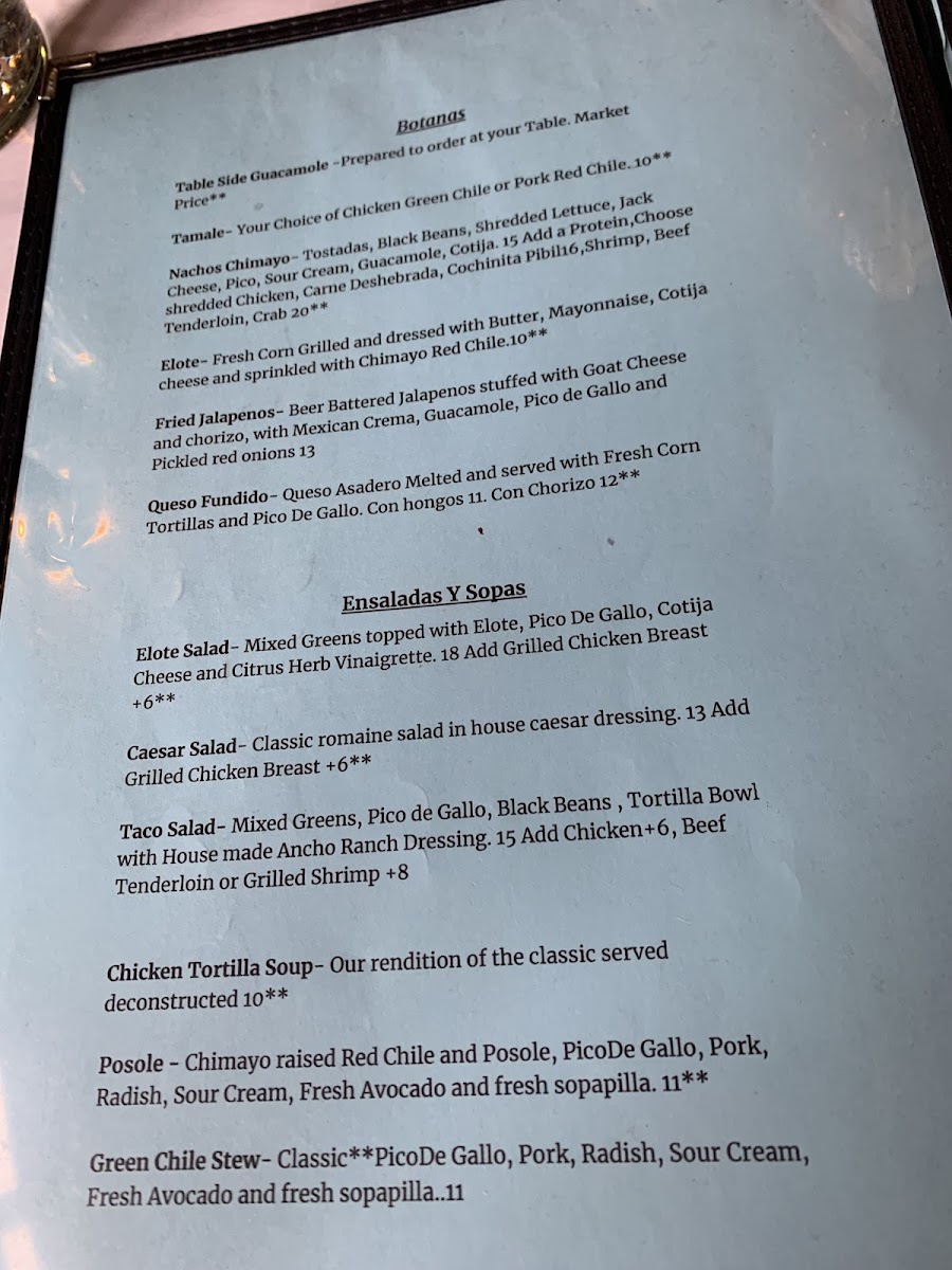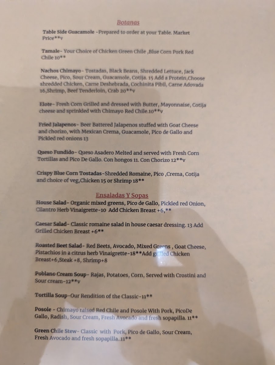 Casa Chimayo Menu