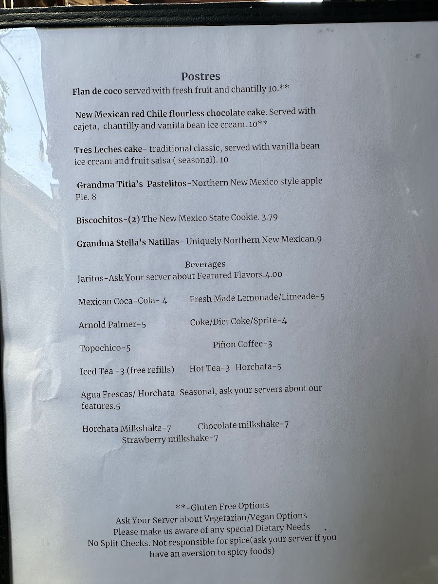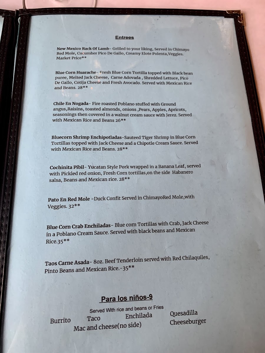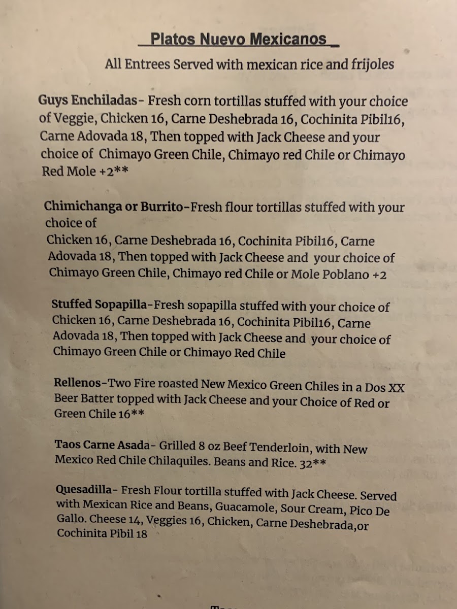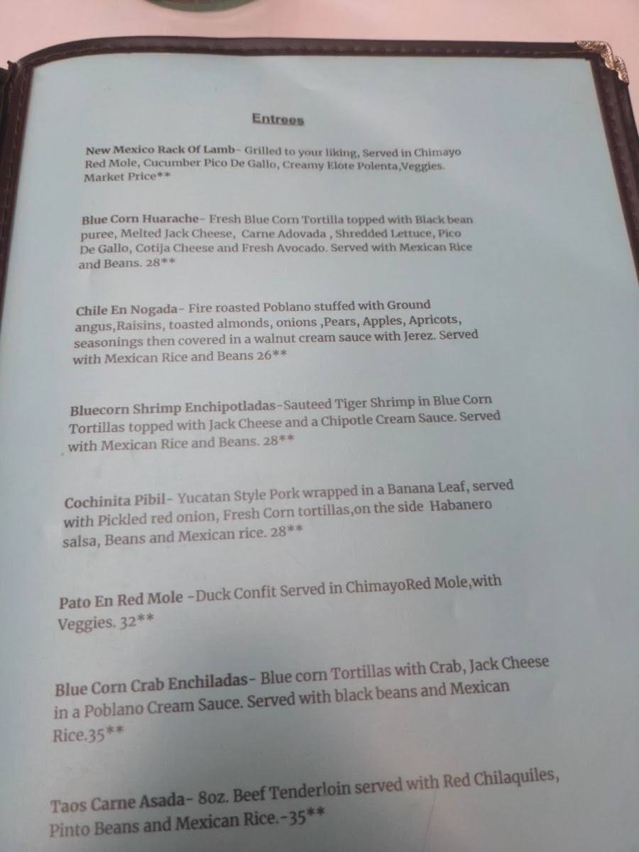 Casa Chimayo Menu